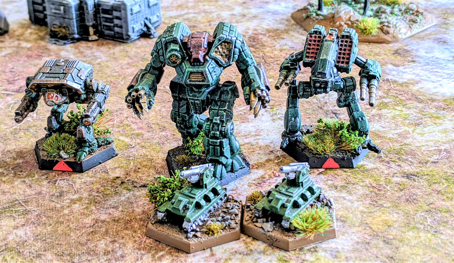 Mercenaries sent in to disrupt a local militia group. The Grizzly is a ridiculous melee MAC loaded up with one-shot explosives to fire off as they close in. The Buzzard is a long range fire support MAC also packing one-shot X-type weapons alongside their MagCannons, accuracy enhanced by an Optics module. The Python is a cloaked sniper MAC, ideally sitting in cover taking long-range shots at slow-moving targets.GRIZZLY (20pts)